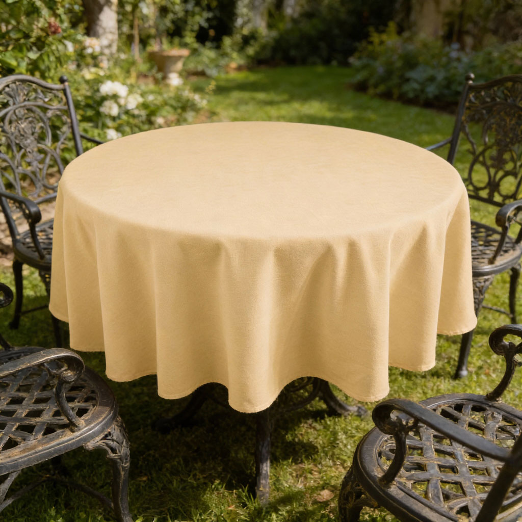 Материята, от която е ушита покривката е полиестер. Предлага се както във вариант малко каре, така и за големи правоъгълни и елипсовидни маси.