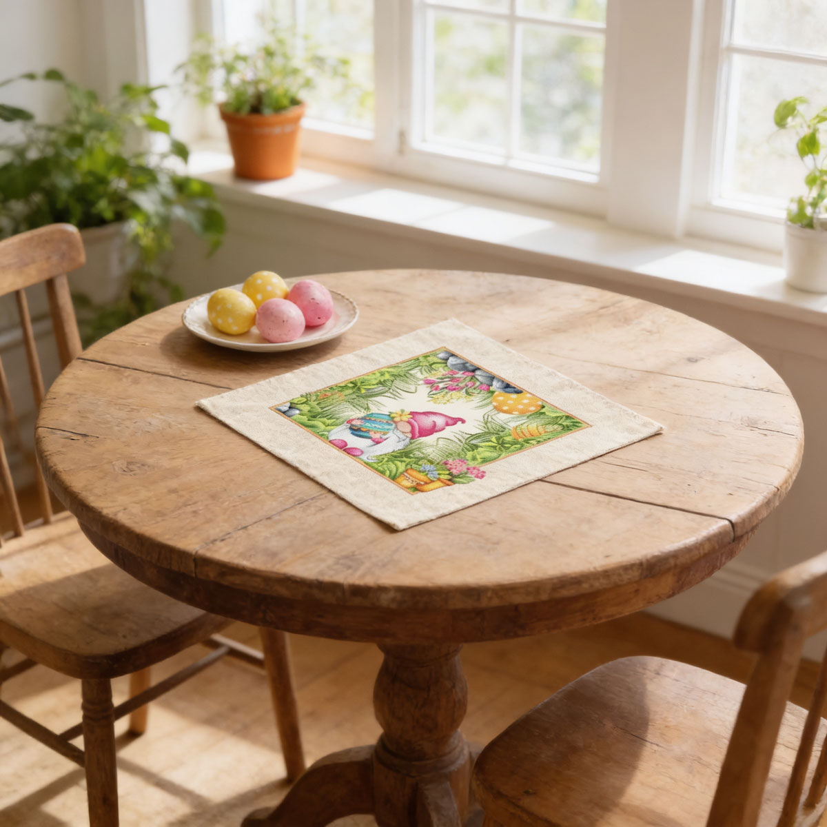Вашата тематична великденска украса ще е още по-очарователна с тези пъстри великденски салфетки. Използвайте ги като малко карета за подложка на кошницата или купата с боядисани яйца. Предложете ги за сервиране, као в дома ви има деца, или очаквате на гости малки приятели.