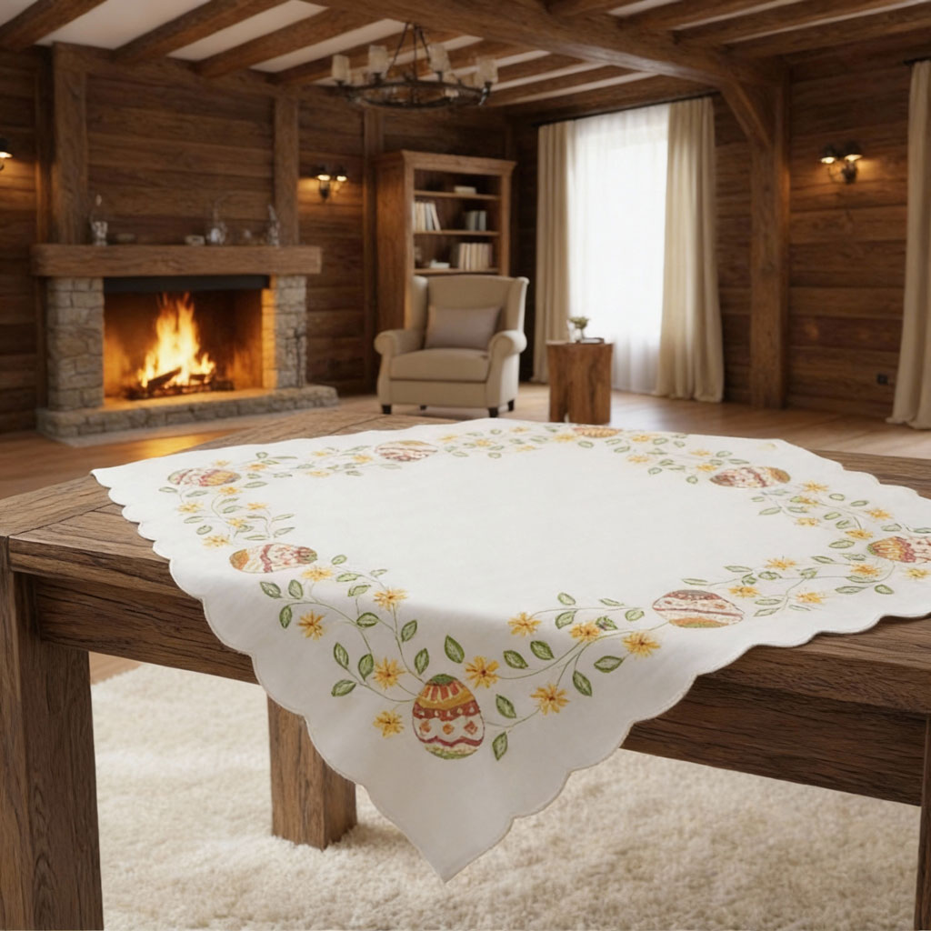 Използвайте го директно върху стъклена повърхност или върху дървен плот. По желание го съчетайте с голяма бяла покривка или покривка в зелено, жълто иличервено.