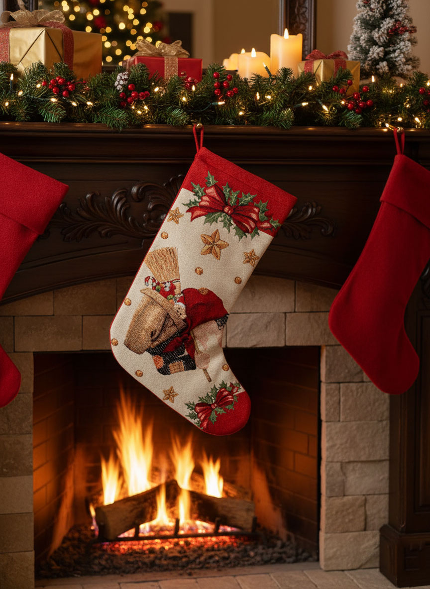 Специално за Коледа - коледен чорап за подаръци и лакомства. Ушит от прекрасна материя - висококачествен жакардов плат. Цветовете са истински коледни.